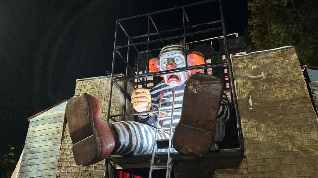 A cena simbolizou o cerco judicial que culminou na prisão de Bolsonaro. Para fechar o conceito, uma gigantesca alegoria trouxe um boneco colossal do palhaço Bozo sentado atrás de grades de ferro, usando uma tornozeleira eletrônica danificada, enquanto componentes ao redor celebravam o que o samba-enredo chamou de “o triunfo da justiça sobre o medo”.