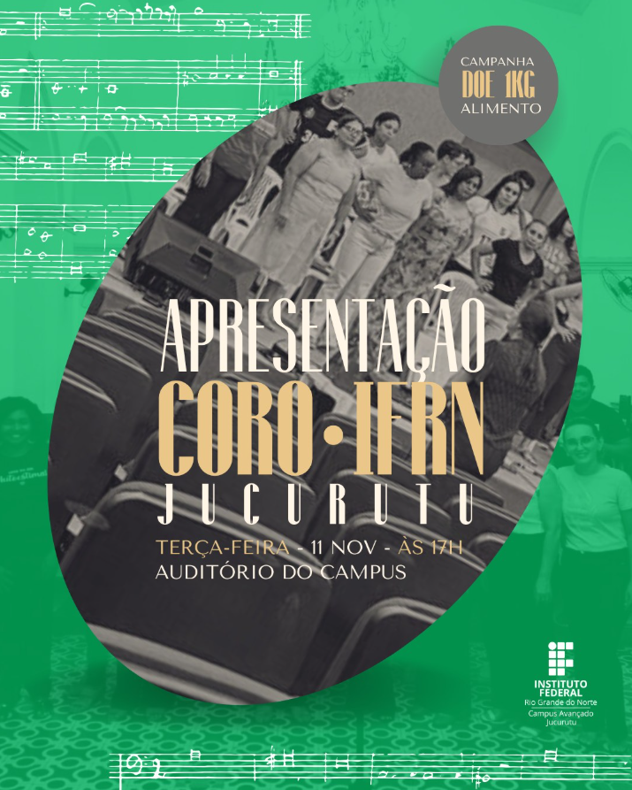 Blog Edilson Silva – O auditório do Campus Avançado Jucurutu será palco de um momento de arte, emoção e solidariedade nesta terça-feira, 11 de novembro, a partir das 17h, com a apresentação do Coro IFRN Jucurutu.